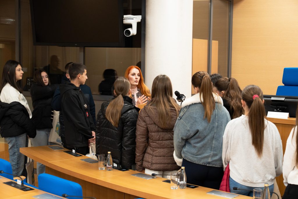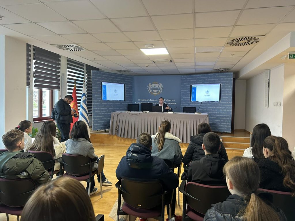 U plenarnoj sali Skupštine Glavnog grada sekretarka Slađana Anđušić upoznala ih je sa ulogom Skupštine, nakon čega su se upoznali sa poslovima Službe za informacioni sistem i digitalnim alatima koje razvija ova služba na čelu sa rukovodiocem Nikolom Mićunovićem.